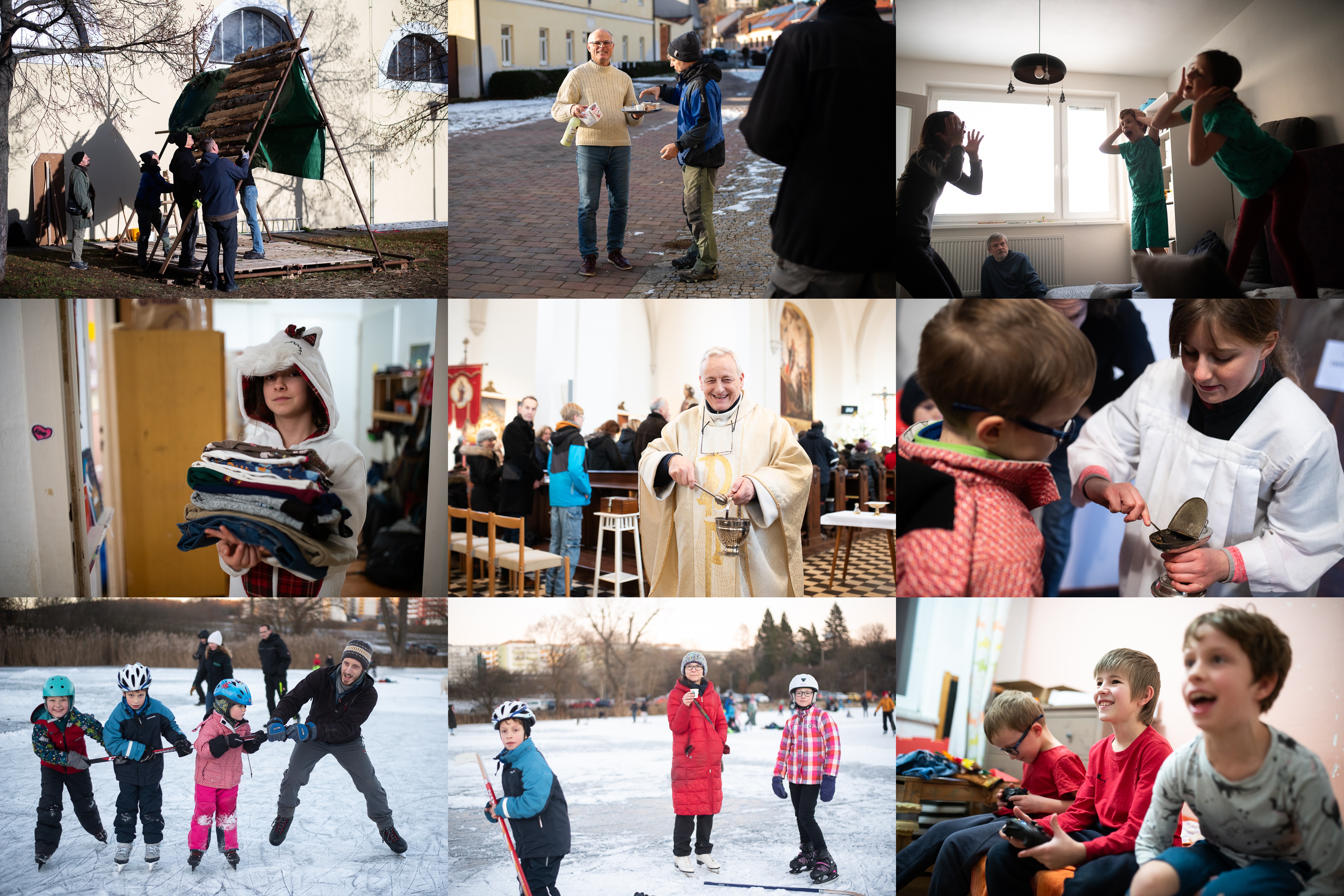 Když se kácí betlém, nelítají tříšky / A pro všechny pracanty tu máme občerstvení / A zase Ryby! Tentokrát vtáhly do vystoupení i některé z díváků / Přivezla jsem si z Prahy pár kousků oblečení, mami... / Marcel nestárne! Alespoň na fotkách s kropenkou vypadá pokaždé nachlup stejně / Pokud vydržíš u ministrování, můžeš časem taky pracovat s kadidlem, Vikoušku / Při této nevinně vypadající aktivitě si Tom brutálně namohl ruku / Donáška kávy až doprostřed rybníka, to je luxus panečku! / FC 25 (nebo kolik)