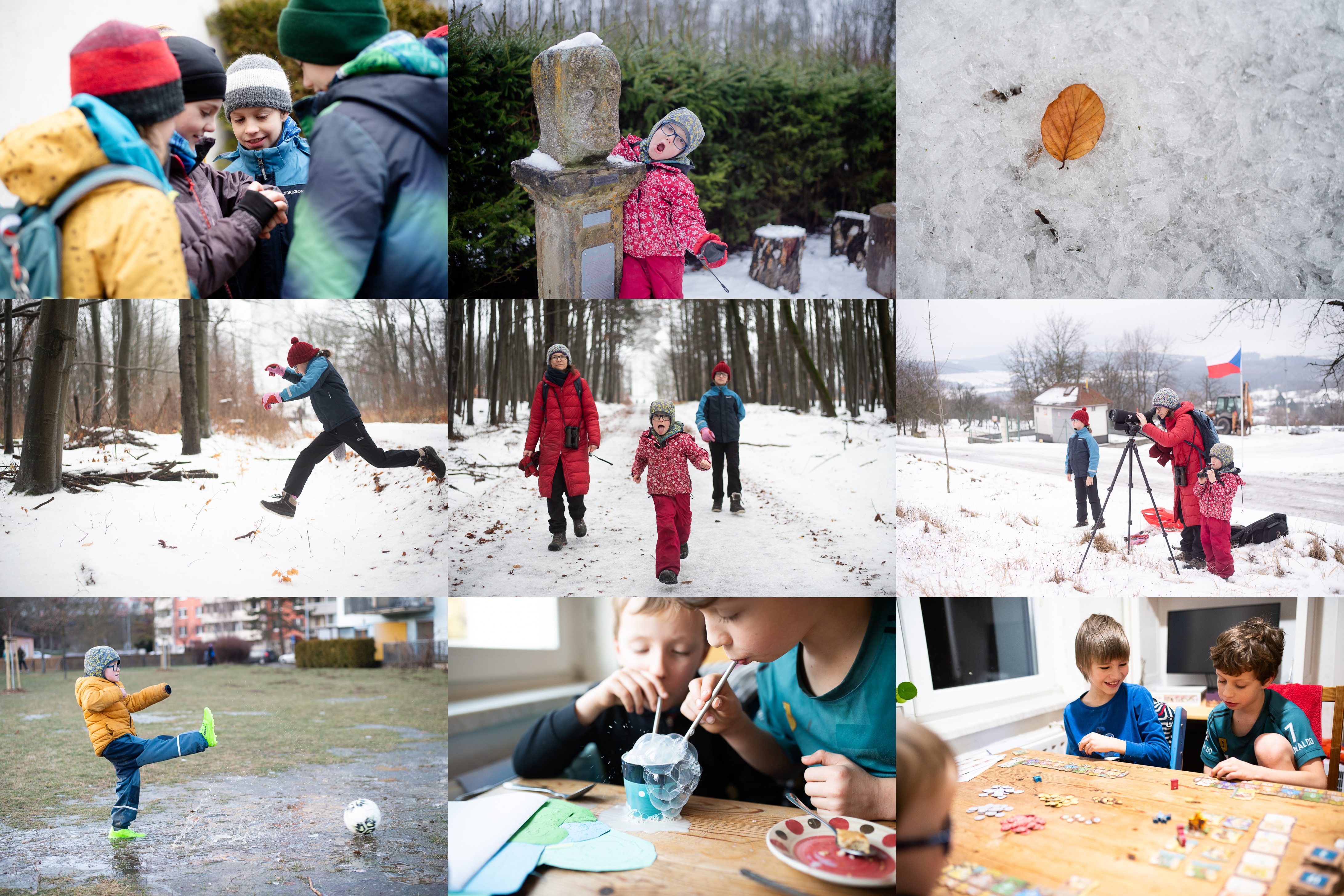 Ráďa před odjezdem na svou první skautskou výpravu / Kdybyste nevěděli, Viki se právě nachází v pohlaví Járy Cimrmana / Po takové kráse jsme šlapali / A do takového sněhu (někteří) skákali / Jděte chvíli vedle sebe, ať vás můžu vyfotit! / V Synalově máme náš oblíbený ptačí strom / Vodní fotbal, hurá! (Jen škoda, že ty kopačky nejsou nepromokavé.) / Bublání, bublání, všechny smutky zahání / Středověk
